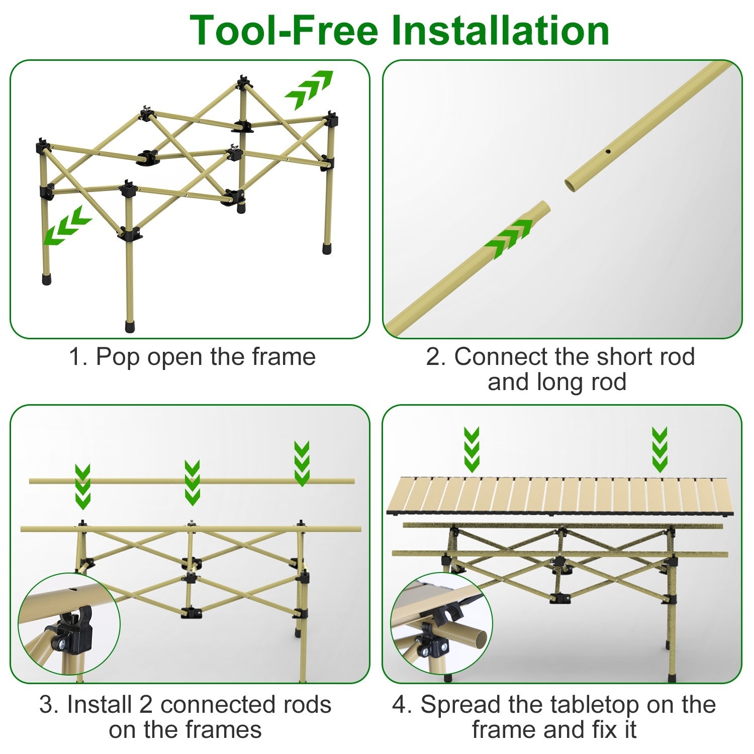 Whether you’re camping, picnicking, or throwing a backyard BBQ, setup takes just minutes with the tool-free design. The legs fold inward, the top rolls up, and it all fits neatly into a compact carry bag with handles for effortless transport. Strong, stable, and sized for convenience - it’s your portable table for wherever life takes you.