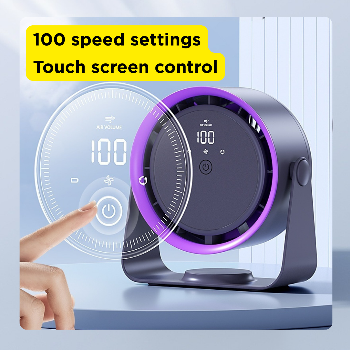 With a digital touch control panel offering 100 precise speed settings, you can customize your breeze to perfection. The 24-hour rechargeable battery keeps the cool coming, and its versatile design mounts easily on a desk, wall, or even clips to your space with the included stand options.