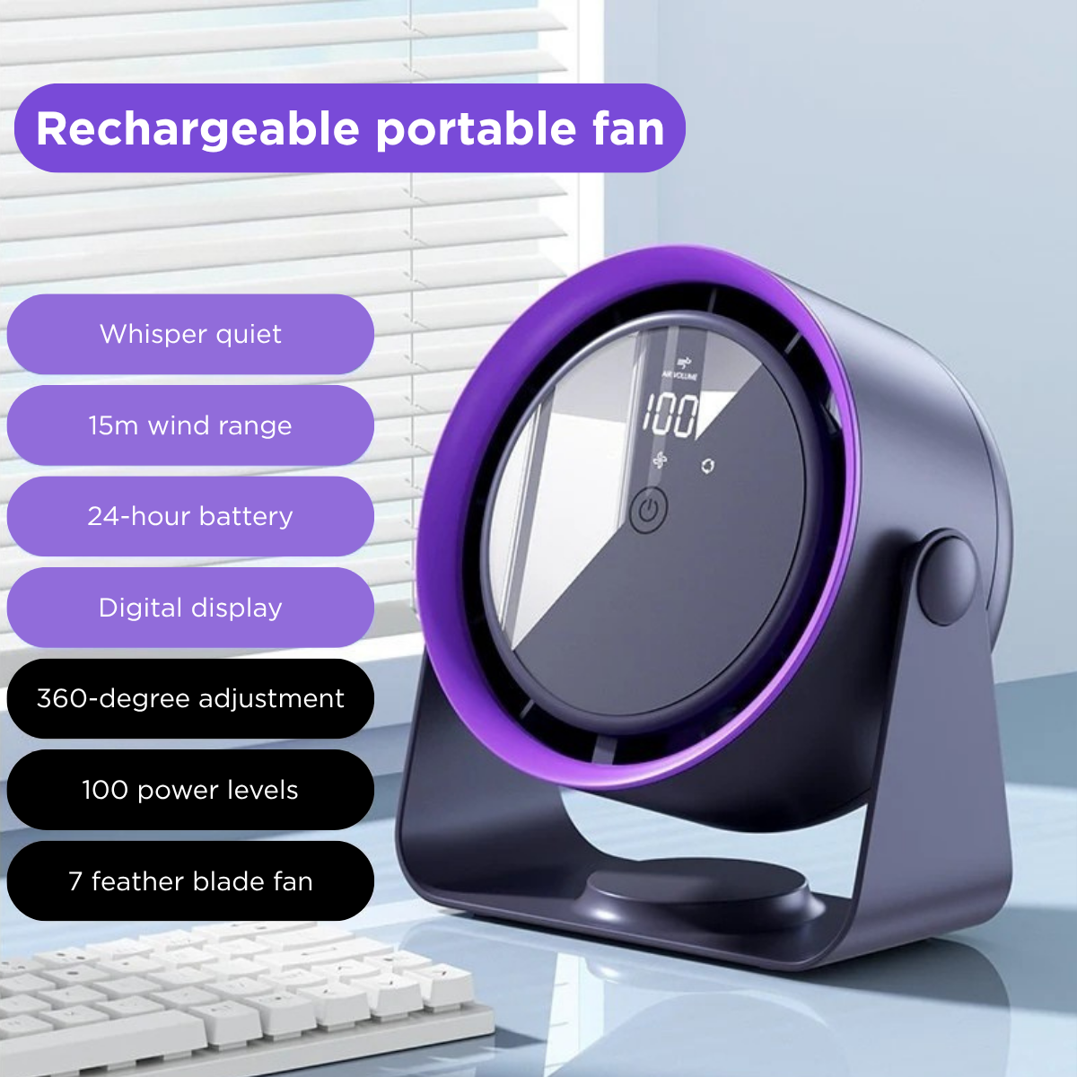 Portable desk & wall fan - rechargable, powerful, quiet with digital controls