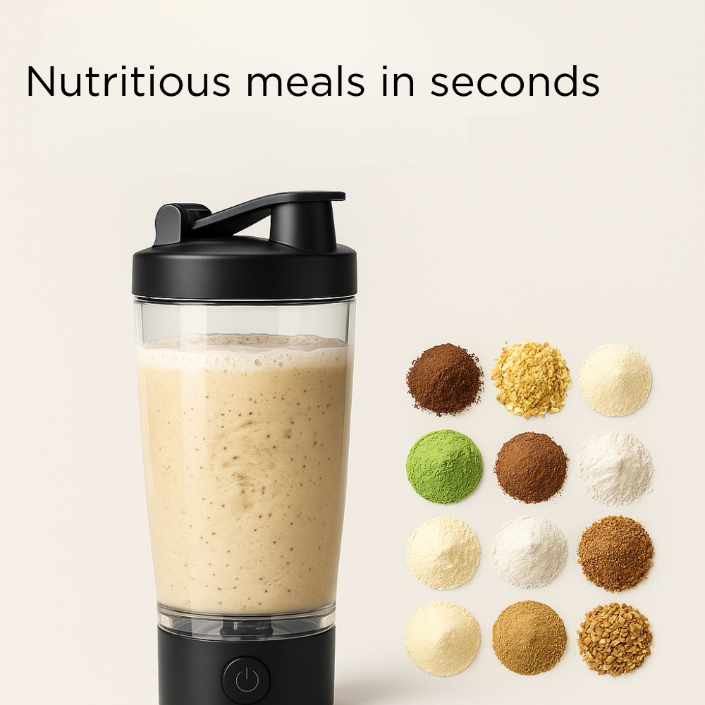 - Powerful Blending: Electric motor quickly mixes protein, supplements, or meal replacements